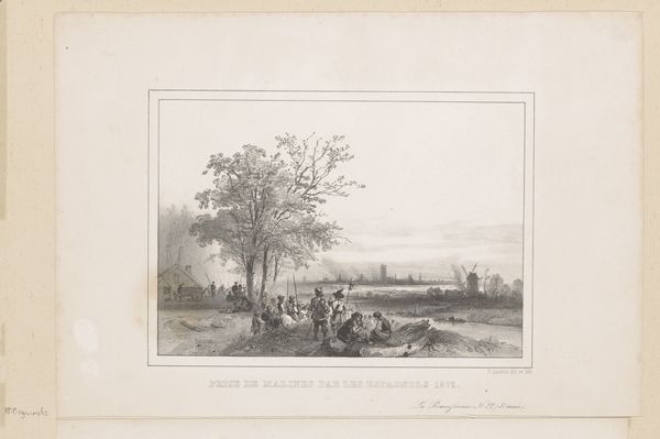 Hilmar Johannes Backer created this print of Gezicht op het Grote Glop te Zaandam, its date is unknown. The composition is horizontally divided into the foreground with figures and a cow, the middle ground with water and boats, and the background with buildings and trees. Backer’s rendering, entirely in monochrome shades, relies on tonal variation and sharpness of line to create depth and spatial recession. The artist meticulously arranges elements to guide the eye across the landscape, interweaving social observation with a structural understanding of pictorial space. This print, with its detailed etching, provides insights into 19th-century Dutch life, but it also serves as a formal study in how perspective and tonal contrast can define space and convey depth on a flat surface. The strategic placement of figures and objects invites a semiotic reading, where each element contributes to a larger narrative about rural life and community. Note how the artist uses a delicate balance between representation and formal abstraction, capturing the essence of a place while also examining the structural components of art itself.