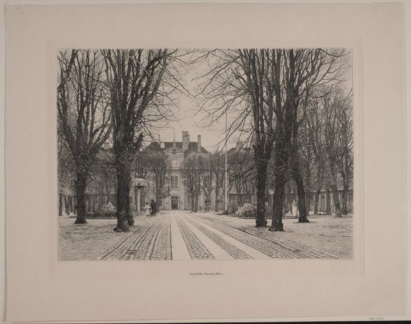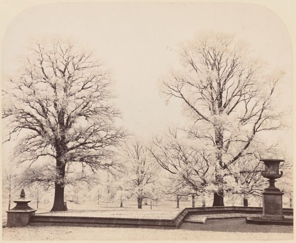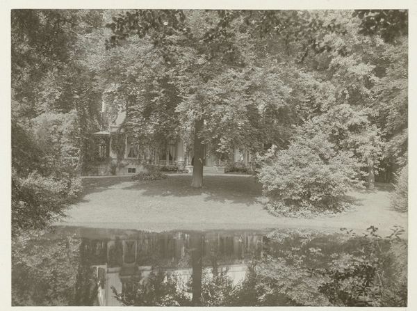 Editor: This is a photograph titled "Geziicht op landhuis De Wildbaan, Driebergen, met sneeuw," which I believe translates to "View of the De Wildbaan country house, Driebergen, in the snow." It's by Henry Pauw van Wieldrecht, dating from 1903-1907, currently at the Rijksmuseum. It's quite beautiful, the snow really softens the architecture. What's your interpretation of it? Curator: The crucial aspect to observe is the process of its creation. We're seeing photographic print, likely manipulated during development or even in the darkroom. Consider the industrial processes involved, the mass production of photographic paper and chemicals that enabled someone like van Wieldrecht, an amateur, to make this image. The social context is key – who owned De Wildbaan? What was their relationship to the labor required to maintain that estate, especially in the cold winter? Editor: So you’re thinking less about the aesthetic quality of the snow, and more about the means by which the image was created and the societal structures it represents? Curator: Precisely. The seemingly innocent depiction of a snowy landscape hides a complex web of industrial production, social class, and labor. Think about the materials used – the silver halides in the photographic emulsion, sourced perhaps from colonial mines. And where would the photograph eventually reside? An album in an upper-class home, further reinforcing divisions between leisure and labour. How might an image like this justify those social conditions? Editor: That's fascinating. I hadn’t considered the wider material and social networks embedded within this seemingly simple landscape photograph. Thanks! Curator: And that reflection enriches our understanding of both the image, its impact, and photography's influence on class relations during that era.