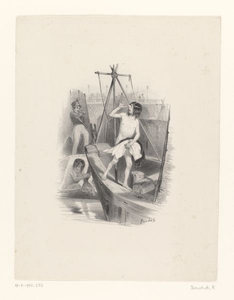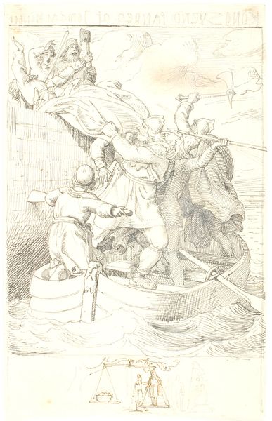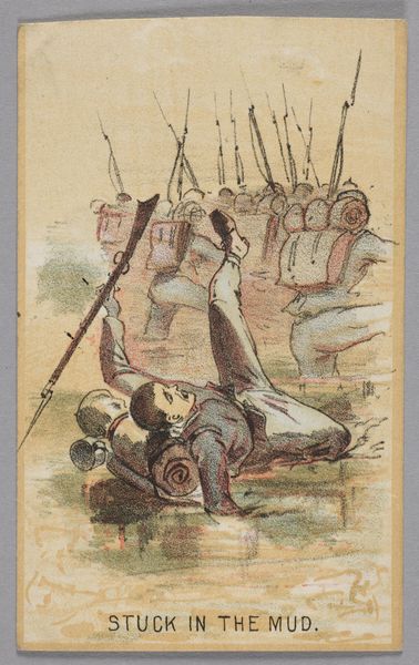 Winslow Homer made this small lithograph, "Life in Camp, Part 1: Stuck in the Mud", depicting a scene from the American Civil War. Here we see Homer's sharp observation of the everyday realities of war, far from the romanticized versions often presented. This image challenges the conventional war art that usually celebrated heroism and valor. Instead, it portrays the undignified, almost comical, predicament of a soldier hopelessly stuck. The mud here becomes a symbol of the quagmire and frustration experienced by the Union Army. Produced during the conflict, this work served as both propaganda and a form of social commentary. It highlighted the physical challenges faced by soldiers, fostering empathy among civilians and subtly critiquing the conflict's grim realities. Understanding this print requires looking at popular print culture of the time, examining newspapers, political cartoons, and other visual media that shaped public perception of the war. These sources reveal the complex social and political context in which Homer's work was created and received. Ultimately, it's a reminder that art is not created in a vacuum but is deeply intertwined with the society and institutions of its time.