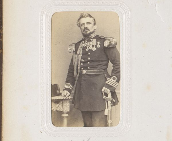 Editor: So, here we have André-Adolphe-Eugène Disdéri's portrait of "Prince Gortschakoff," a silver print daguerreotype from the 1860s. It's quite formal, almost severe. He looks powerful, adorned with all those decorations. What jumps out at you when you look at it? Curator: The most striking feature, to me, is the sheer weight of inherited power encoded in his regalia. Note the careful articulation of each medal and adornment, practically screaming about lineage and authority. But look closer: do you detect a subtle unease, a guardedness, perhaps? Editor: I see what you mean. It's like the symbols of power are also a kind of…armor? What purpose did portraits like this serve, beyond just documentation? Curator: Precisely. Think about how these images were circulated. Disdéri, a master of the carte-de-visite, helped democratize portraiture. These photographs became tools for crafting and disseminating carefully constructed public personas. The Prince’s image reinforced Russia’s diplomatic power at a time of great social change. Each star and sash spoke of his achievements, creating an impression for both internal and external consumption. Do you see how the stern expression supports this effect? Editor: Yes, now that you mention it. The stiffness, the controlled gaze... it's all very calculated. It's less about capturing a personality and more about projecting an image. Curator: And in that carefully constructed image lies a complex negotiation between personal identity and the weight of history and expectation. We can see, even across the distance of time, the tension inherent in embodying such power. It begs the question, doesn’t it: who *was* the man behind the Prince? Editor: Absolutely, the contrast between the symbolic weight and the subtle human expression is really compelling. Thanks, I’ll never see portraits the same way again. Curator: The layers of symbolism are endless, each revealing echoes of the past within the present image. It’s been a pleasure exploring them with you.