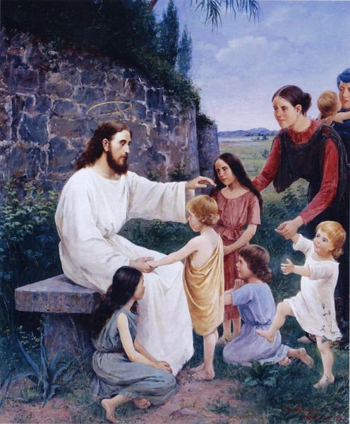 Curator: What strikes me immediately about this piece is the powerful light and clarity –almost an ethereal quality--and how the artist has rendered a massive crowd scene in such a unified manner. Editor: You're right, it's certainly a study in unity of light. What we're looking at here is “The Sermon on the Mount” by Carl Bloch. While the piece itself is undated, Bloch was an incredibly popular Danish artist known for his paintings which often captured scenes from the life of Christ, offering a compelling intersection between religion, social dynamics, and historical representation. Curator: Historical representation is a keen point to explore. The artist’s skill at rendering individual expressions and gestures, almost photorealistic, speaks volumes about faith and hope. The individuals present seem carefully chosen. It raises questions about how the artist conceived the role of ordinary people in this divine moment. Editor: Agreed. Semiotically, the upturned face gazing directly at the Christ-figure almost transcends beyond realism; but is designed to engage the viewer to encourage them to embody their own feelings of faithful rapture. But, the diversity represented within this group is rather romanticized if not idealized. One may critically view the lack of representation or acknowledgement of various societal oppressions prevalent during the life and times of Christ, such as acknowledgement of sex workers or the disabled, as but a few examples. Curator: That's a good counterpoint, especially when considering that Bloch was working in a very particular artistic and social context. But look, overall, it appears that Bloch is seeking something eternal, capturing what’s constant across time—light, hope, faith— rather than the nuances of moment or cultural specificities. The use of light as the focal element draws the eye to the face of Jesus; his divine knowledge represented almost as rays of wisdom, gently illuminating those who will hear them. Editor: And to build off of that light: the shadowed or concealed figures stand not simply to serve an atmospheric rendering of mass within landscape, but those figures that the artist obscures could very well represent the state of doubt, shame, or social alienation—a state of wanting for redemption that this divine man may remedy if one chooses to hear His sermon. I will say though, despite my own readings, the artistry and symbolism at play remains compelling. Curator: Absolutely, and viewing it in a formal way illuminates the true genius in Bloch’s approach. Editor: Viewing with a modern understanding allows us to not only better dissect this piece, but hopefully, see humanity, faith, and light through the eyes of various contemporary understandings.