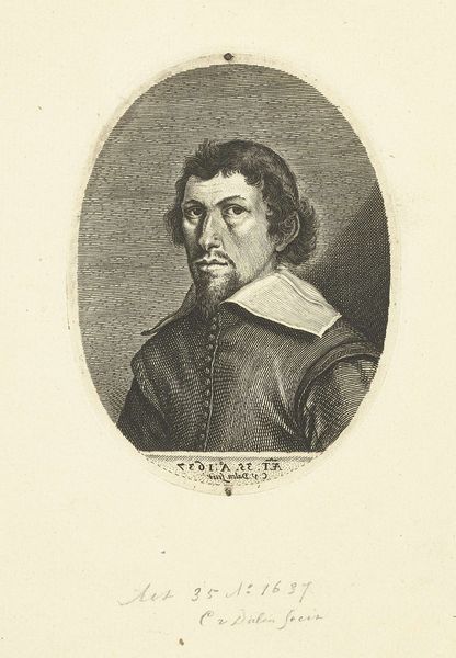 Editor: We're looking at a portrait of Theodorus Johannes Dirk Graswinckel, created sometime between 1636 and 1666 by Theodor Matham. It's an engraving, currently held at the Rijksmuseum. I'm really struck by how detailed the lines are, especially given the medium. What draws your attention in this piece? Curator: What interests me is the mechanics of its production. Engraving relies on a specific division of labour. Think of the artisan meticulously incising lines into a copper plate, creating a matrix to produce identical multiples. This process democratises image production, placing portraits – usually exclusive commodities – within reach of a wider audience. Note also the materiality; ink, paper, and the press itself become central to the meaning. The final print isn't simply a representation, but the product of specific processes and relationships. What do you make of the imagery surrounding the portrait itself? Editor: I see symbolic objects…scales of justice, a rooster…Do those relate to his profession or status? Curator: Precisely. These weren’t arbitrarily chosen, but carefully designed to construct an image of power and authority tied to the sitter's identity. However, considering the socio-economic background of this print, were these images truly impactful, or did their inherent symbolic power get somehow ‘lost in translation’ due to the industrialisation of its making? Editor: That's a fascinating point! It really makes you think about how the meaning changes depending on how accessible the art is and who is making it. Curator: Indeed. Examining art through its materiality and production opens a window into the complex relationships between artist, patron, process, and ultimately, its audience. Editor: This perspective makes me appreciate the work on a different level, by understanding its material process.