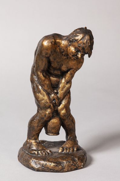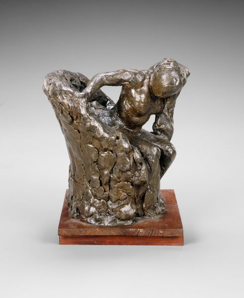 Curator: Looking at this clenched bronze fist, I can’t help but imagine the inner turmoil of the figure it represents. There’s something so viscerally human about it. Editor: Absolutely. And that is Auguste Rodin's study for the Hand of Pierre de Wiessant, created somewhere between 1880 and 1974. It's currently held here at the Met. You immediately pick up on the power of raw emotion! Curator: It's like capturing a moment of suppressed fury. Makes me wonder, what's it like to hold such strength, and simultaneously hold back? How many of our gestures betray the stories we can’t always speak? Editor: Well, Pierre de Wiessant was one of the six Burghers of Calais who offered themselves as sacrifices to King Edward III in 1347, during the Hundred Years' War. This hand was meant for a figure in a larger monument. So it is a symbolic representation of sacrifice and desperation under dire political circumstances. The final sculpture sits in Calais and memorializes a fraught chapter of French national identity. Curator: That context…it definitely adds a layer of profound sadness, even despair. You almost feel like you’re looking at the seed of some terrible scream that hasn’t yet erupted. Editor: Rodin’s sculptures frequently explore these difficult themes. His goal was always, I think, to cut through polite idealism, and represent humanity in its full complexity and ambiguity. This work gives dignity to his humanity. Even broken. Even scared. Curator: It definitely leaves me contemplating the many burdens people carry, not only publicly but even in secret corners of themselves. The way the light catches the textures—rough, almost violently shaped—it all adds up to a captivating, concentrated charge. Editor: Indeed. Perhaps its unfinished, 'sketch-like' appearance allows for deeper access into his creative, but most importantly his emotive, process.
