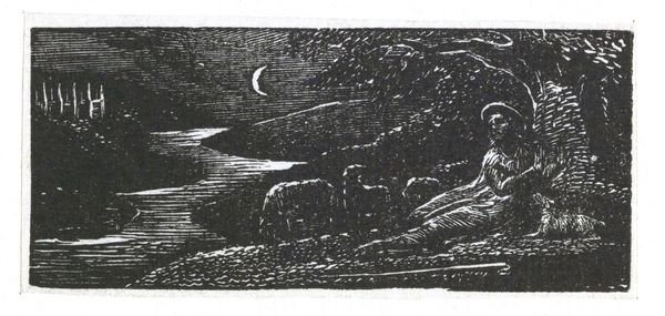 Samuel Palmer was the most important of Blake’s followers, known as the Ancients. Palmer first met Blake in 1824. He described these illustrations to an imitation of the First Eclogue by the Roman poet Virgil as ‘visions of little dells, and nooks, and corners of Paradise’. Palmer’s art was particularly influenced by them. These prints appealed to the Ancients because they were the result of Blake’s experiments with a new medium; he had never engraved on wood before. Even at the age of sixty-four he wanted to make further explorations in his art. Gallery label, August 2004