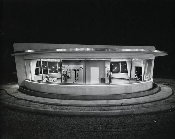 Curator: Edward Ruscha’s gelatin silver print, "Shell - Daggett, CA," really captures a specific slice of Americana. It's a bit ghostly, wouldn't you say? Editor: Absolutely. It's blurred, like a half-forgotten dream of a roadside stop. The Shell sign, a beacon in the darkness, feels almost… spectral. Curator: Well, that blur is key. Ruscha often focuses on these ubiquitous symbols, imbuing them with a sense of transience. The gas station becomes less about function and more about mood. Editor: It’s archetypal, isn't it? The journey, the pit stop. Shell becomes a symbol of transition, of constant movement, but also a place to refuel, physically and metaphorically. A liminal space, almost. Curator: I agree, plus there is that slight imperfection to it. It has some kind of deep artistic intention. It almost feels like an accidental painting. Editor: Yes, the imperfections give it a human touch. It's less about the Shell station itself, and more about what it represents. I find it incredibly evocative. Curator: It does linger in the mind, doesn't it? Something so mundane, elevated to the level of a haunting memory.
