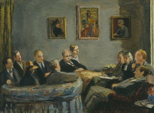 Hanna Hirsch-Pauli painted "The Friends of Ellen Key" with oil on canvas, and the date is unknown. The painting captivates with its intimate, almost theatrical, arrangement of figures bathed in warm, muted light, creating a sense of hushed intensity. The composition is structured around the circular gathering of individuals, a formation that suggests both unity and the potential for dynamic exchange. The formal arrangement here is crucial; the circle might be seen as a symbolic form, invoking ideas of equality and shared intellectual space. The brushwork, loose and expressive, adds to the scene's immediacy, while the strategic use of light directs our gaze, emphasizing key figures and their interactions. The painting destabilizes conventional portraiture by focusing less on individual likeness and more on the collective identity and shared purpose of the group. Each element contributes not just to the aesthetic quality but also to the painting's function as a commentary on intellectual community and social reform.