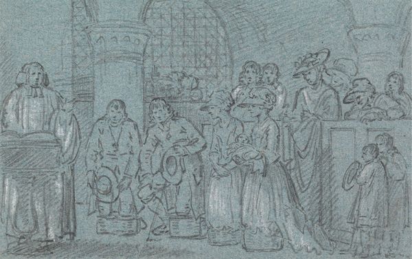 This illustration to Schiller's 'Song of the Bell' was made by Moritz Retzsch using pen and ink on paper. The choice of materials is quite traditional, yet the subject is of its time: the artist is illustrating a poem that emphasizes the value of labor. The fine lines of the ink create a delicate, almost lace-like quality, contrasting with the weightier themes of community and industry found in Schiller's poem. It's intriguing to consider how Retzsch uses a relatively simple and accessible medium to depict a complex social landscape, and how the very act of drawing, with its inherent demand for careful, skilled labor, mirrors the poem's celebration of craftsmanship. The image shows us a snapshot of society, complete with figures from different social strata. Retzsch’s illustration invites us to consider how artistic practices like drawing are intertwined with broader social and cultural values, challenging the idea that art exists in a realm separate from everyday life and labor.