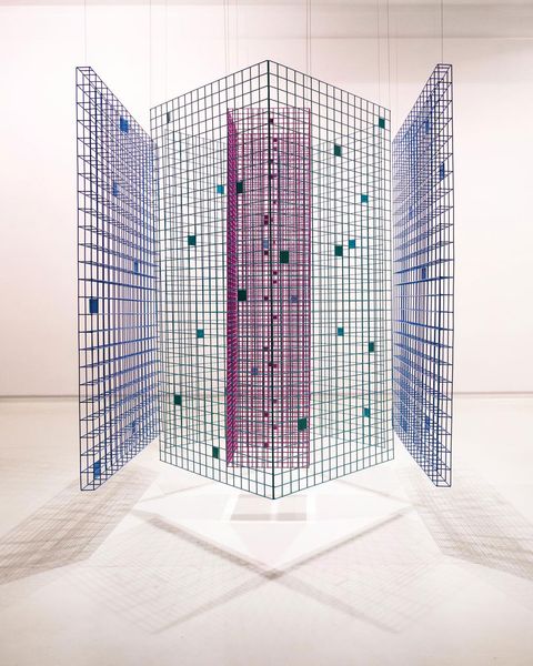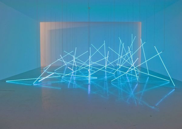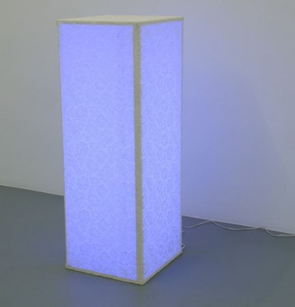 This is "Object with blower" by Gerwald Rockenschaub and it's a room! A room made of some kind of inflatable material, all pillowy and soft, and the color is that pale, barely-there, off-white. It reminds me a bit of a bouncy castle crossed with a minimalist sculpture. The whole thing is about surface and texture, the way the light plays on those puffy squares. It’s like being inside a giant marshmallow, or maybe a cloud, if clouds were square. I love the way it changes the space, makes you rethink what a room can be. The parquet floor is a nice counterpoint to the inflatable walls. There's a playfulness to it that I really appreciate, reminiscent of some of Franz West's installations. It's art that doesn't take itself too seriously, but it's also making some pretty smart points about space, form, and our bodies in relation to them. Is it sculpture? Is it architecture? Is it just a big toy? Rockenschaub doesn't seem too concerned with giving us a straight answer.