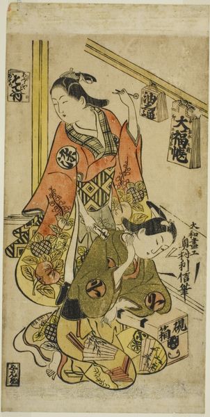 Katsukawa Shun'ei created this woodblock print in 1791, depicting the actor Ichikawa Komazo III in a play performed at the Kawarazaki Theater in Edo, now Tokyo. The print gives us insight into the cultural importance of Kabuki theatre during the Edo period. In this single sheet, Shun'ei represents Ichikawa Komazo III in three distinct roles from the play. The layering of characters in one print reflects the dynamic and transformative nature of Kabuki theatre. Kabuki allowed for commentary on contemporary social issues, class dynamics, and political events. Woodblock prints like this one served as publicity for the play and celebrated the actors. The popularity of actors could influence fashion and trends in the city. By studying playbills, theatre records, and the cultural context of Edo-period Japan, we can better understand the rich social and artistic fabric that informed this print and the performance it represents. The image gives us insight into the relationship between art, entertainment, and society.