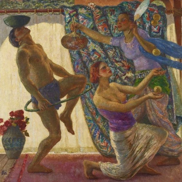 Henri Lebasque painted "La diseuse de bonne aventure, sainte-maxime" with oil on canvas, capturing a moment of quiet repose. I love the way the brushstrokes are visible, almost like the scene is built out of soft daubs of color. It’s all about the process, the making. Look closely at the steps, and the way he’s built them up, layer by layer. The paint isn’t trying to hide; it’s right there, thick and textured. The red dress the woman wears is particularly striking. It's patterned with flowers. I see the influence of Impressionism, but there’s also something very personal in the way he handles the paint. It's like he's whispering secrets with each stroke. It makes me think of Pierre Bonnard, another French painter who loved to paint intimate scenes of domestic life. But where Bonnard's colors often seem to shimmer and dissolve, Lebasque's have a more grounded, earthy quality. Art is a conversation, isn't it? A painter speaks to us through their work, inviting us to see the world in new and unexpected ways, and there's never just one way to see it.