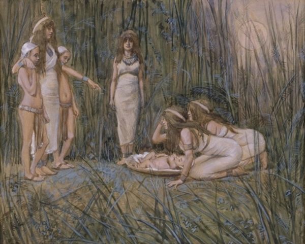 James Tissot painted this scene of ‘Pharaoh's Daughter Has Moses Brought to Her’ using watercolor and gouache over graphite. It’s kind of amazing how he builds up these layers, right? It’s all about the process, letting the underlayers peek through to create this luminous, almost dreamlike quality. Look at the water, how it shimmers and reflects the light. Tissot doesn’t hide his brushstrokes; they’re loose, fluid, giving the scene a sense of movement and immediacy. But then there’s that contrast with the figures, rendered with such precision. The way he uses color is so subtle, muted tones that create a real sense of depth and atmosphere. It’s like he’s inviting us to step into this ancient world, to feel the coolness of the water, the warmth of the sun. He reminds me of Odilon Redon, another artist who wasn’t afraid to embrace the mysterious and intangible. Like life, this piece feels unfinished, open to interpretation. You can see the effort, but the mess is part of the magic.