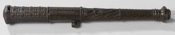 Editor: Here we have a bronze cannon, "Bronzen kanon VOC A(msterdam)", crafted in 1748 and currently residing at the Rijksmuseum. Its metallic surface looks aged, almost like a relic of a forgotten age. How do we interpret such a blunt instrument from today’s perspective? Curator: It’s easy to view this object solely through the lens of its utility, but consider its social and historical implications. The VOC, or Dutch East India Company, was a major player in global trade. Can you think about what underpinned its success? Editor: I suppose its power rested on its ability to use force? To protect its trade routes and colonies. Curator: Exactly. This cannon is a direct manifestation of that power dynamic. Reflect on who benefited from that power and at whose expense. Whose stories are silenced by its very presence? Editor: So, seeing this cannon isn't just about appreciating its baroque artistry but understanding its role in colonial exploitation? Curator: Precisely! We can examine this as an example of how technological advancements, like this cannon, propelled colonial projects, fundamentally shaping power structures and leaving a legacy of inequality. Where do we see the ripples of those inequalities today? Editor: That gives me a lot to think about. It's uncomfortable to realize how something seemingly inert can be a potent symbol of historical injustice. Curator: Indeed. Art, even functional art like this, urges us to engage with complicated histories, stimulating a conversation about justice and accountability across generations.
