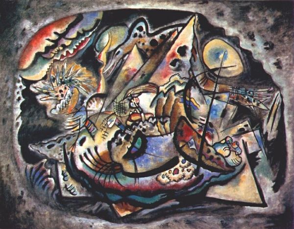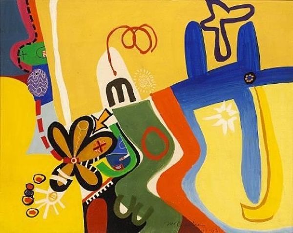 Wassily Kandinsky made this draft for a mural using gouache on paper, and it’s held at the Georges Pompidou Center in Paris. Kandinsky is known for his abstract style and his theory about the connection between painting and music, so it’s not surprising that his works are full of movement and rhythm. Here, he uses a pretty dark palette as a background for the interplay of light and colour. The effect of gouache gives the image a matte surface and velvety texture. The painting’s energy seems to come from the way that Kandinsky layers colours to create depth and dimension in what is essentially a flat image. Look at the bottom left, there are these long, thin, white lines – almost like an irregular grid. These create a foundation of pure energy for the forms to sit on. Kandinsky’s work reminds me of Joan Miró, another artist who explored the depths of abstraction and the interplay of form and colour. Like Miró, Kandinsky invites us to engage with art that embraces ambiguity.