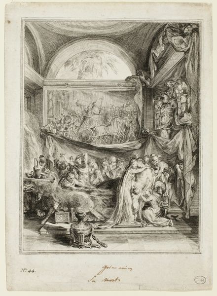 François Joullain created this print, entitled “Ecce Homo,” in eighteenth-century France. The image depicts a biblical scene of Pontius Pilate presenting Christ to a crowd before his crucifixion. Prints like this played a crucial role in the cultural life of the time. They circulated images widely, acting as a form of visual media and a commodity. This print reproduces a painting by another artist, Charles-Antoine Coupel, and in doing so, makes the composition available to a broader public. We should consider the market for such images. Religious imagery remained popular in this period, but so too did prints that reproduced paintings from the royal collection. To understand the history of this print, we might look at the archives of the Royal Academy of Painting and Sculpture, the institution that dominated the French art world at the time. Understanding the print in its social and institutional context helps us to understand the complex public role of art in eighteenth-century France.