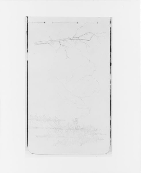 Editor: This is Albert Bierstadt's "River Scene (Columbia ____?)" from 1890, it is a pencil and ink drawing. It’s just a quick sketch, but something about the vast open space makes me feel peaceful, almost solitary. What's your interpretation? Art Historian: It's interesting you feel that sense of solitude. Bierstadt, part of the Hudson River School, often depicted the American West as a sublime, almost untouched paradise. But considering the date, 1890, this idealized vision was already clashing with the reality of westward expansion and its impact on Native American populations and the environment. Do you think this sketch might reflect a conscious or unconscious awareness of that changing context? Editor: That's a great point. I hadn't considered the tension between the romantic ideal and the historical reality. It does look more sparse, less populated compared to his other paintings. How did these artistic representations influence public perception at the time? Art Historian: That’s the crux of it, isn’t it? These romanticized landscapes, exhibited widely, shaped public perception, encouraging settlement while often masking the brutal realities of colonization and resource exploitation. It’s a good reminder that even seemingly simple sketches are loaded with cultural and political baggage. What do you make of the composition? The vertical slash feels strange somehow. Editor: The vertical line almost cuts the scene in half. Maybe he planned to develop each half differently? Art Historian: Perhaps! Or perhaps this division reflects the social divisions of the time: civilization encroaching on nature, settlers versus indigenous people. Think of the power structures inherent in landscape art – who gets to look, who owns the land, who is erased from the view. Food for thought. Editor: That makes me see the sketch in a completely different light. It is no longer just a peaceful landscape but rather a window into the complex politics of its time. Thanks for pointing out what I missed initially! Art Historian: And you helped me remember the power that seemingly unfinished artwork can hold in its simple reflection of cultural anxiety. It's been enlightening.