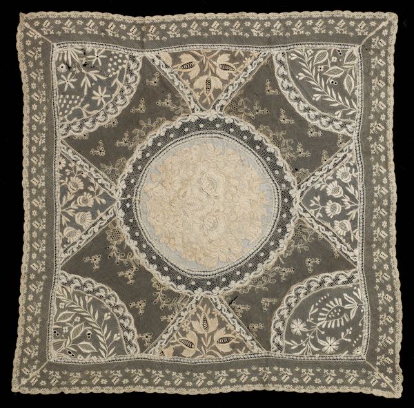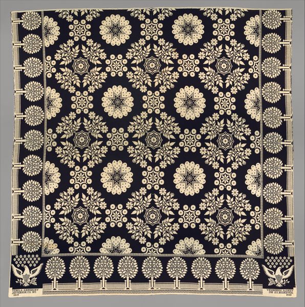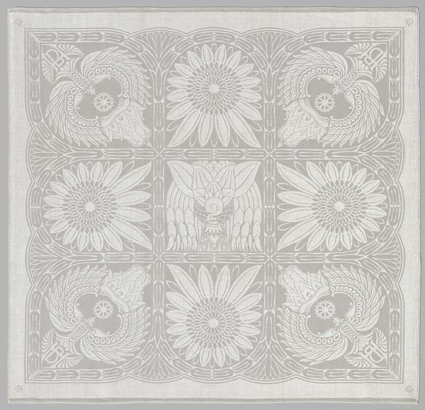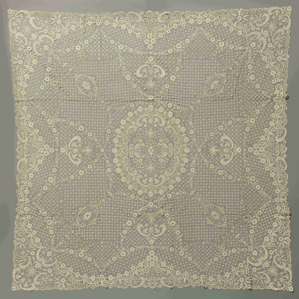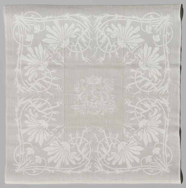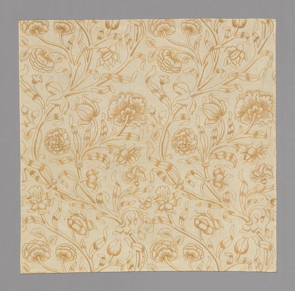 Curator: Let's turn our attention to this silk "Coverlet," created around 1700. Its maker is anonymous. Editor: It has such a lovely, faded opulence, like a dream half-remembered. I'm struck by the craftsmanship required to render all these flowing forms—how did the textile workers of the day feel about the repetition, the long hours? Curator: That repeated motif – often referred to as a paisley – has travelled through time and space, taking on different cultural meanings. It originates in Persia and spread through the Silk Road into India, becoming especially popular in Kashmir. Later, Europeans – mainly the British – imitated it, using new industrial technologies and disseminating its imagery even further. Each repetition subtly alters its inherited symbolic weight. Editor: Industrial production always shifts the terrain of cultural symbols, cheapening and alienating their origin in tandem with new markets. How remarkable is it that we still perceive a kind of artisanal character here despite these forces! Was it made with hand looms? What dye processes gave it these subtle tones? Curator: It is speculated that many patterns like this bear ancient fertility symbols within them. Notice how some of the paisley forms are pregnant with other designs, seeds blossoming forth from within. And even this muted, aged palette—imbued with warmth—suggests ripeness, plenitude, fecundity... all tied to the idea of providing comfort and abundance. Editor: Right, like the maker imagined it breathing life, warmth, and promise onto those sleeping beneath it! What a thought. I wonder about the silk farms themselves, the labor behind this… so easily concealed by these elegant flourishes. Curator: These objects have deep memories ingrained into their forms – histories of hands at work, cultures merging, and desires for protection and blessing. They hold a strange power. Editor: A power tempered, of course, by the socio-economic disparities always embedded within craft. I do agree there's magic woven here, yet a bittersweet feeling remains when I imagine the anonymous individuals who lent their skill to its production. Curator: Well, regardless, it serves as a testament to our enduring drive to enshroud ourselves and our homes in beauty. Editor: And to ponder, even momentarily, what hands created the objects of our daily lives. Thank you.