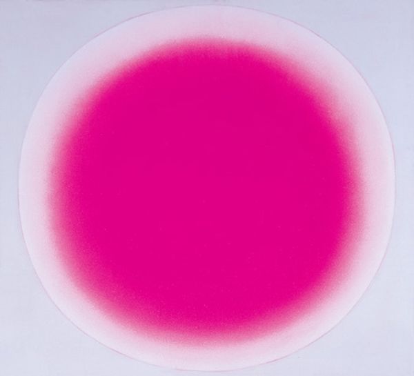 Editor: We are looking at a late 19th-century glass paperweight crafted by the New England Glass Company. I'm struck by the vibrant magenta fading into soft white—it feels almost like a captured sunset. What symbolic weight might have been carried in such an object during its time? Curator: It’s a beautiful specimen, isn’t it? Glass itself is always symbolic, think of transparency and fragility. The sphere is often associated with wholeness and perfection. How does the distortion created by the glass affect your reading? Editor: I hadn’t thought of the distortion, but I suppose it could symbolize the way we perceive memory-- not always accurately. Is there something significant about the colours? Curator: Precisely. Consider the intense magenta, often tied to passion, love, or even royalty. But here, it softens, fades... perhaps symbolizing fleeting beauty, a moment captured and preserved. Does the lone, subtle green element at its core suggest anything to you? Editor: Perhaps a spark of hope or renewal amidst the fading colours? Or could it be a symbol of something growing? It seems isolated though, as if frozen in time... Curator: An intriguing reading! It encourages us to contemplate how seemingly simple objects are loaded with symbolic potential that resonated across different eras, wouldn't you agree? Editor: Definitely! It's amazing how much can be conveyed through color, form, and material when you look closely. Curator: Exactly. Cultural memory isn't just found in grand monuments, it resides even in everyday objects like this.