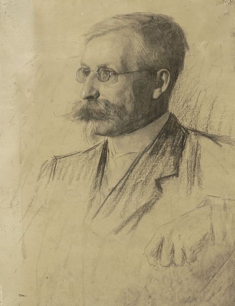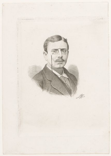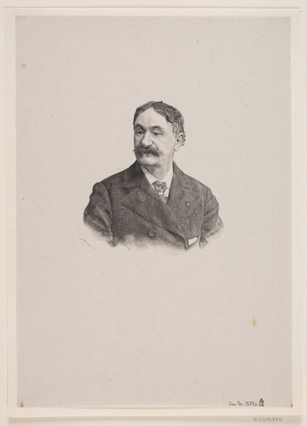 Curator: This is “Reproductie naar een foto, schilderij, tekening of prent,” which translates to “Reproduction after a photo, painting, drawing, or print.” It's dated somewhere between 1860 and 1915. Editor: The monochrome palette gives it an air of austere formality, don't you think? Almost like a photograph, capturing a likeness for posterity, even if it's reproduced. Curator: Indeed. Considering its creation during a time of expanding industrial processes, I am curious about its specific reproductive technique. The material handling—the way the paint seems deliberately applied—invites questions about artistic intention in replicating other mediums. Editor: You are right to notice the hand in it. It speaks to a specific socio-economic context. Perhaps affordable portraits created for a growing middle class? Democratizing representation itself? Curator: Quite possibly. The original, or its likenesses, were being disseminated through printed formats. It raises critical inquiries concerning authenticity, artistic value, and how social stature influenced access to visual representation. Editor: Museums at the time grappled with defining high art versus these sorts of reproductions, didn’t they? Classifying art was—and is—never neutral. Curator: Precisely! Examining its provenance might further expose prevailing institutional biases, aesthetic standards, and market dynamics during this epoch. The fact that it acknowledges itself as a reproduction begs a deconstruction of artistic agency. Editor: So, is it then about challenging the notion of a singular, authentic artistic genius by drawing attention to the mechanisms and contexts behind creating images in general? Curator: It may function as commentary on the emergent image culture. How we consume, interpret, and ascribe significance to portraits within varying social strata. Editor: Fascinating. I now appreciate this unassuming work much more—not just as a historical record but also as an early media-critique artifact. Curator: Agreed. Investigating production circumstances sheds light on underlying ideologies that dictate representation throughout history.