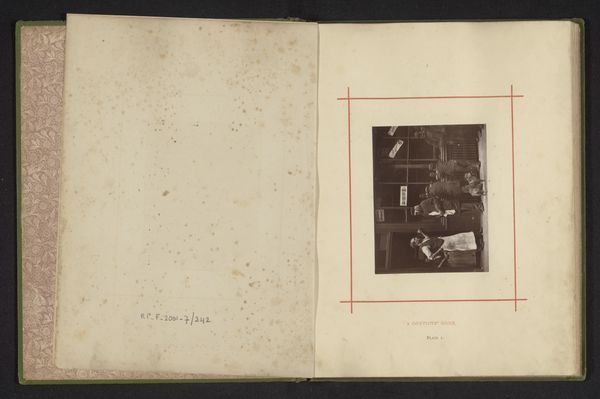Editor: So this photograph, a gelatin-silver print from before 1903 by L.L. Kleintjes, is titled "Handwerkende vrouw aan tafel en een andere vrouw kijkt door het raam naar binnen" – or "Craftswoman at a table and another woman looks in through the window." I’m struck by its almost voyeuristic quality. What’s your initial take? Curator: It breathes, doesn't it? It feels like stepping into a half-remembered dream. The stark contrast of the gelatin-silver print almost casts the whole scene in nostalgia. Consider how Kleintjes frames the interior, the woman absorbed in her craft; while another hovers ethereally outside, almost like a ghost. Don’t you think there's an entire silent film waiting to burst forth from within the picture? Editor: A silent film! I hadn't thought of it that way. Do you think there's any intended narrative at play, perhaps reflecting social divides of the era? Curator: I lean towards the symbolic. The woman inside seems grounded, purposeful. But that one at the window, she represents yearning, maybe restriction...or, dare I say, hope looking in from the outside? Maybe it mirrors the artist’s own conflicted relationship with observing and participating in the world around them, I wonder? What emotions does she evoke for you? Editor: That’s a richer interpretation than my initial thought. It definitely makes me reconsider the relationship between the figures. Curator: Maybe this is all projection...that ghostly woman in the window certainly invites that. Which, in the end, makes me appreciate its mystery even more. Editor: Thanks! That gives me so much to consider as I think about this photo.