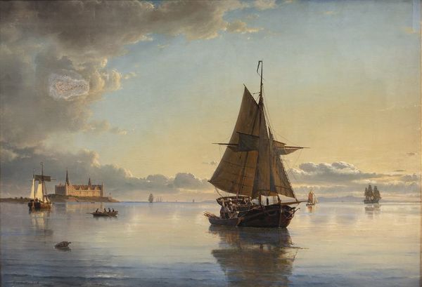 Amaldus Nielsen's painting, Efter hukommelsen, presents a muted seascape rendered in oil, dominated by diffused light and tranquil hues. The composition, characterized by a low horizon line and expansive sky, evokes a sense of serene vastness. Nielsen's brushwork captures the fluid, reflective qualities of the water, mirroring the sky's atmospheric conditions. The interplay between light and shadow is central to the painting's effect, softening the contours of the vessels and creating a unified, almost dreamlike setting. The painting can be viewed through the lens of phenomenology, which emphasizes subjective experience. The choice of subdued colors and the painting's overall structure contribute to an environment where visual boundaries blur, which invites contemplation on the nature of memory and perception. It challenges conventional representational clarity, favoring instead an exploration of the interplay between internal psychological states and the external world.