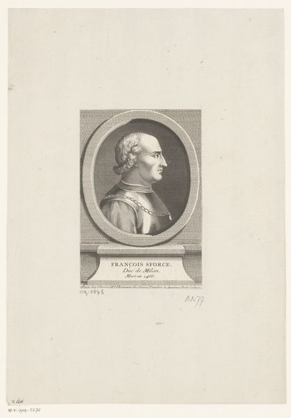 Curator: Welcome. We’re looking at Augustin de Saint-Aubin’s "Portret van Voltaire" from 1775, currently held here at the Rijksmuseum. This engraving, exemplifying the Neoclassical style, offers a fascinating glimpse into the visage of the celebrated Enlightenment thinker. Editor: First thought? Intense! Look at that face—it’s like a roadmap of a life lived passionately, maybe a little rebelliously. You can feel the sharp wit and maybe just a hint of world-weariness etched in every line. The wig is doing its best to lighten things up. Curator: Indeed. Saint-Aubin employs a tight, controlled line, typical of the Neoclassical portraiture of the period. Note the emphasis on clarity and precision in rendering Voltaire's features, conforming to the stylistic conventions and values associated with order, reason, and restraint prevalent at the time. The oval frame adds to that feeling of contained order. Editor: Oh, contained for sure. It's like they’re trying to cage his spirit, put a polite, tidy border around all that radical thinking. But those eyes… they still sparkle with mischief. And even in this small print, he’s holding court, isn't he? Notice that little inscription underneath. Very fancy and important. Curator: The text offers a glimpse into the reverence held for Voltaire during his time. Saint-Aubin’s technical mastery in engraving captures not just Voltaire's likeness, but also conveys something of his intellectual stature and the cultural climate of 18th-century France. It invites deeper consideration of history-painting and portrait conventions of this era. Editor: True. Though you almost want to grab some charcoal and do a really raw, messy portrait next to this to express his impact, this feels too… respectful. But it does freeze a moment in time – a powerful writer facing the changing world, just before everything exploded with the revolution. A potent silence. Curator: Ultimately, this print functions as more than a portrait; it serves as a cultural artifact reflecting Enlightenment ideals through Neoclassical aesthetics, masterfully crafted for enduring impact. Editor: Right, this little engraving—with its precision and restraint—becomes a portal, a small window into a world on the cusp of massive change. Thought-provoking and intense.