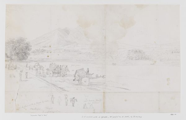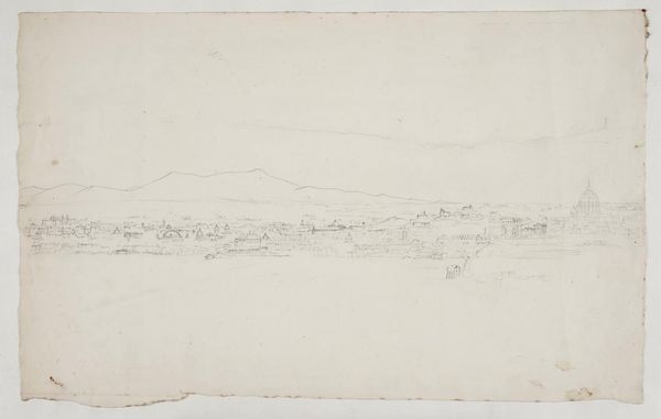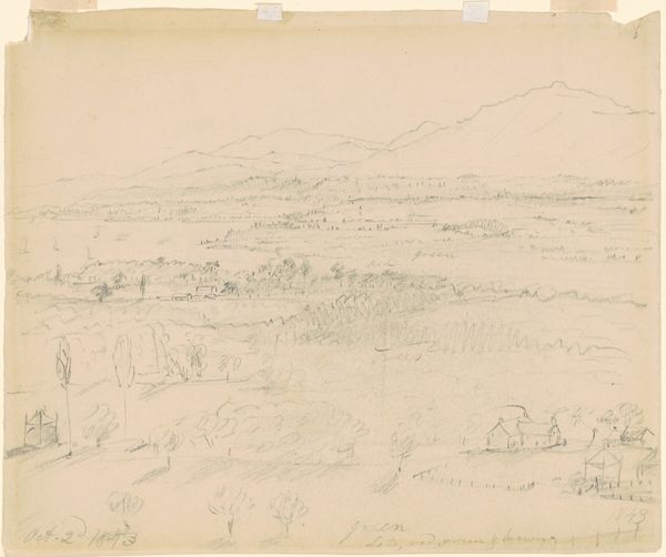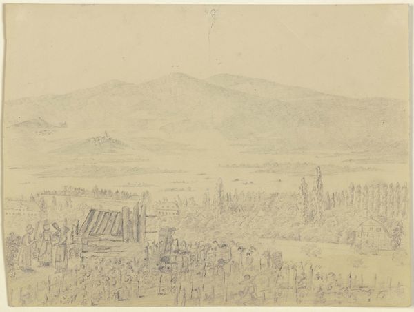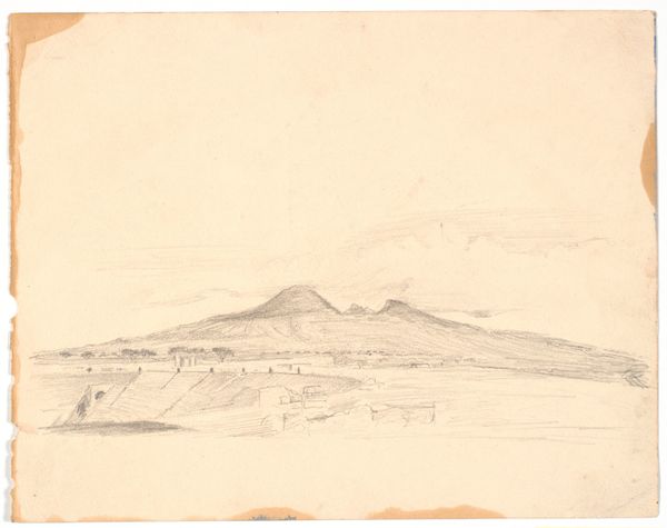 Curator: Let’s turn our attention to Johann Wilhelm Schirmer's "Ansicht von Vaison-la-Romaine," created in 1851. This artwork, housed here at the Städel Museum, is rendered in pencil on paper, demonstrating Schirmer's profound connection to landscape art. Editor: My first impression is one of faded grandeur. It's like looking at a memory, soft and muted, but there's still a strength in the structure, the skeletal remains of something powerful. What I mean is, it almost whispers its existence, doesn’t it? Curator: Indeed. Considering the sociopolitical environment of mid-19th century Europe, Schirmer's choice of such a subject can be read as an exploration of cultural identity and historical consciousness, reflecting on the decline of once-mighty empires through the romanticized gaze upon landscape and ruins. Editor: Yes, but it’s the details that are fascinating—the subtle strokes hinting at architectural forms amidst nature's overwhelming beauty. Did you notice the subtle ways the man-made fades back into the hillside? It's like nature reasserting itself, always reclaiming its own territory. Curator: Precisely. Romanticism often idealized nature as a space of freedom, while subtly criticizing the constraints of industrial modernity. The presence of the Roman ruins prompts us to examine themes of imperialism, colonialism, and power structures across time. How does Schirmer present nature to us—as a space of national identity? Or resistance? Editor: I think, and maybe this is overly sentimental, there’s just an immense melancholy in the fading away, though. It's beautiful but tinged with loss. To your earlier question, yes it seems that Schirmer used landscape as a mirror, holding up what once was and then whispering what might have been or will become of them. Curator: Schirmer’s depiction of Vaison-la-Romaine invites us to contemplate questions of memory, cultural heritage, and how landscapes themselves become contested sites of historical interpretation. The soft execution might be an active decision to bring forward conversation around legacy. Editor: Perhaps. Either way, Schirmer certainly made me reflect on it all! I never expected so much to come from a simple pencil drawing.
