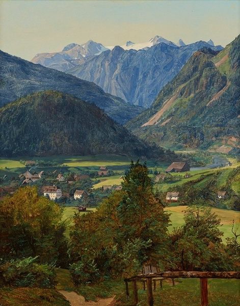 Ferdinand Georg Waldmüller composed "The Dachstein Seen from the Sophienplatz" by orchestrating layers of space with meticulous realism. The interplay of light and shadow sculpts the landscape, creating an immersive depth. Notice how the composition invites the eye to traverse from the foreground's verdant thicket to the distant, snow-capped Dachstein massif. Waldmüller employs a structural technique akin to stage design, where each zone is clearly delineated yet harmoniously connected, revealing the influence of Romanticism's fascination with nature's sublime order. The artwork destabilizes the traditional hierarchy of landscape painting. It focuses on a panoramic vista not for its exoticism, but for its intrinsic beauty and geological grandeur. Here, nature serves as a symbolic structure reflecting both emotional resonance and an objective assessment of the visible world. This painting invites us to decode the semiotic system of landscape, where mountains signify permanence, valleys suggest life, and light embodies truth, thus encouraging a continuous dialogue between perception and meaning.
