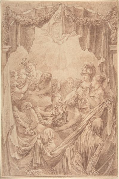 Louis Fabritius Dubourg made this chalk drawing of ‘The Raising of Tabitha’ sometime in the 18th century. The story, from the Acts of the Apostles, tells of Peter raising a pious woman from the dead. As a historian, I’m interested in how Dubourg uses this biblical scene to comment on the social structures of his time. Notice the theatrical staging, the carefully arranged figures, and the emotional expressions. These visual cues invite viewers to contemplate not just the miracle itself, but the virtues of faith and charity embodied by Tabitha. In 18th-century Europe, religious institutions played a crucial role in social welfare, and artists often used biblical narratives to reinforce moral values and social hierarchies. Dubourg was French, and he likely would have been influenced by the artistic conventions of the French court, where art was used to promote the values of the monarchy and the church. To fully understand the meaning of this drawing, one could research the role of religion in 18th-century French society, as well as the patronage system that supported artists like Dubourg.
