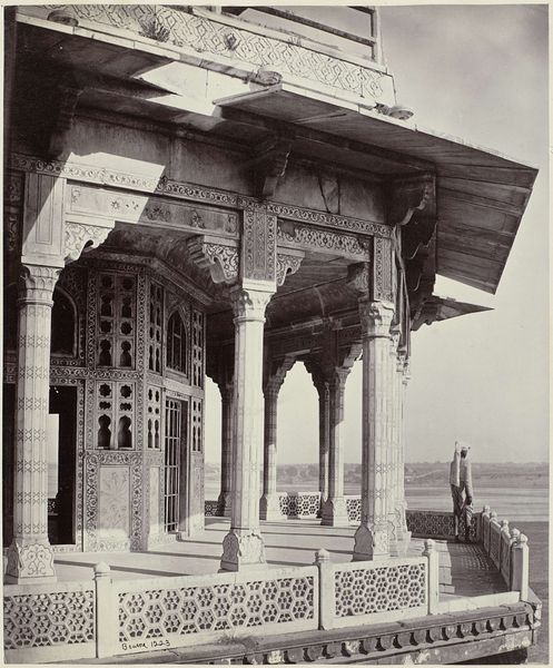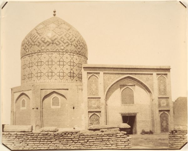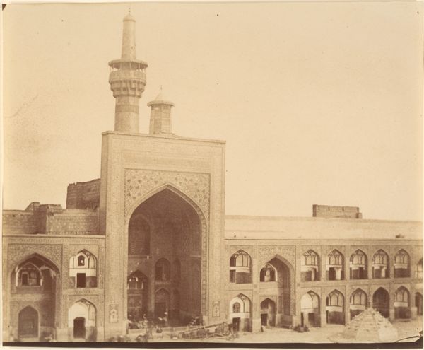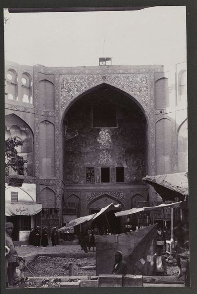 This photograph of the Shah Mosque in Isfahan, Persia, was taken by A.G.A. van Eelde. While the date of the photograph is unknown, it encapsulates the artistry and labour inherent in the mosque's construction. The most striking aspect is the facade itself, adorned with intricate tilework. Each tile, likely crafted from fired clay and painted with vibrant mineral pigments, would have been individually placed to create complex geometric and floral patterns. The process is labour-intensive and requires specialized skills passed down through generations of artisans. The photograph also captures a moment of social context: the casual presence of people and animals around the mosque hints at the building's role as a central hub for daily life, and the bicycle on the left perhaps indicates the encroachment of industrialization. The value of this image lies not only in its architectural subject but also in its implicit testimony to the social networks of skilled craftspeople who contributed to the building's construction. It is a reminder of the human effort behind such magnificent structures.