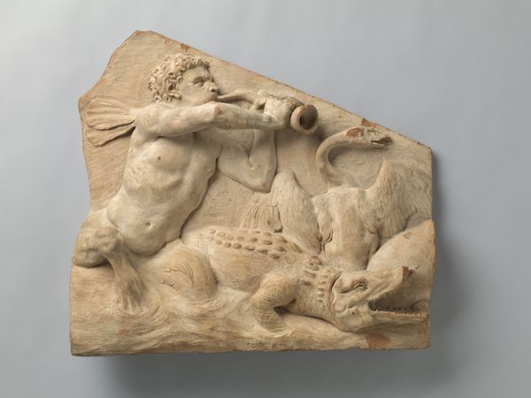 This terracotta relief, "The Judgement of Junius Brutus," was created by Artus Quellinus in the 17th century. The composition is a tableau of raw emotion, framed by the rough, textured surface of the clay. Quellinus uses depth sparingly, creating a shallow stage for his figures. The eye is drawn to the stark contrast between the impassive Brutus and the violent executioners. Brutus’ extended arm creates a strong diagonal line, mirroring the executioner’s downward swing, visually binding justice and brutality. The rough texture of the terracotta accentuates the drama, lending a tactile quality to the scene. The figures' muscular forms are rendered with a Baroque sensibility, emphasizing dynamic movement and emotional intensity. The limited depth flattens the scene, creating a sense of claustrophobia, mirroring the inescapable nature of fate. This work challenges us to consider the relationship between power, justice, and sacrifice, leaving us to ponder the complexities of moral decisions.