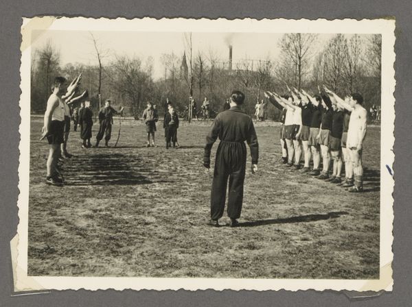 This photograph shows a group of Jeugdstormers, the youth movement associated with the Dutch NSB party. Note the uniformity of dress: the black ties against white shirts suggest the adoption of a modern aesthetic that was used to signal the break with tradition, but that can also be seen as a visual tool that aided in the creation of a strong sense of unity. In many cultures throughout time, clothing has been used as a visual marker for identity, a way to signal belonging to a group. The scene evokes a powerful, almost primal impulse to belong to a collective. We can trace this deep-seated need through various historical and cultural manifestations. Images such as this one are powerful because they reveal the cyclical nature of history, reminding us how symbols and motifs can be re-appropriated and re-contextualized across different times and places, for very different and dangerous means.