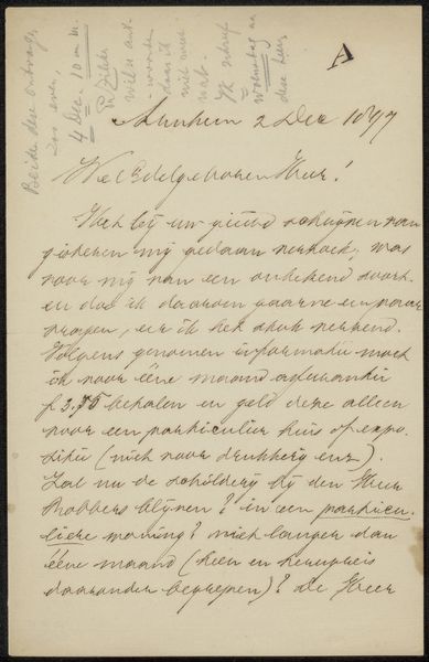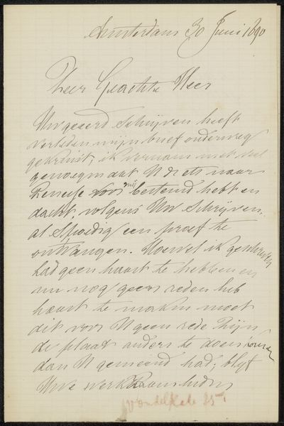 This is Edouard Taurel’s “Brief aan Philip Zilcken”, dating back to 1892 and housed in the Rijksmuseum. It is an intimate work, defined by the interplay of dense ink on a creamy page. The composition is dominated by the artist’s handwriting, each stroke varying in pressure and thickness, creating a textured surface that invites close inspection. The formal structure of the piece is quite revealing. Taurel's arrangement destabilizes traditional notions of artistic presentation; the lines of text create a rhythm of dark against light, forming visual patterns that almost overwhelm the linguistic content. Here, the materiality of the letter—the paper and ink—becomes the message. This breakdown of established forms reflects broader intellectual currents questioning stable meanings. The act of writing itself becomes a performance, and the visual quality of the handwriting supersedes the letter's explicit content. The letter’s abstract form challenges us to consider the act of communication as a visual experience, underscoring the transient nature of meaning within a structured yet fluid composition.