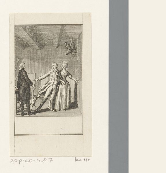 This engraving, "La Fleur kust de handen van de dames," was made by Daniel Nikolaus Chodowiecki, using a metal plate, likely copper. Look closely, and you'll notice that Chodowiecki's image is all about process. The delicate network of lines that build up the scene, and describe the characters, reveals an intense amount of labor. Engraving is painstaking work; each line incised with a burin, and printed one impression at a time. The subject of the print is revealing too. A crowd has gathered to receive flowers – objects of natural beauty, now made available for consumption. The engraver, like the florist, gives us access to something precious, but in a way that is repeatable, accessible, and part of a commercial exchange. Ultimately, this work makes us consider the value of labor, and the dynamics of its circulation. It invites us to see prints not just as images, but as products, embedded in a web of social and economic relationships.