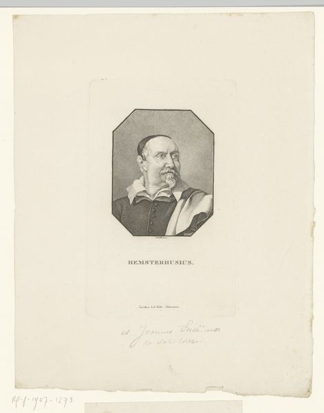 Editor: So, this is "Portrait of an Unknown Man with Book," created by Giuseppe Longhi in 1804, done as an engraving. The fine lines make it feel almost like a photograph. What strikes you about it? Curator: It's interesting to consider the engraving process itself. Look at the labor involved in creating these precise lines, essentially translating flesh and fabric into a series of incised marks. What does that say about value and representation in this period? Is it elevated due to its means of production? Editor: I hadn’t considered that. It makes me think about mass production versus, say, painting. Did prints democratize portraiture or just create another level of access? Curator: Exactly! Engravings allowed for wider dissemination of images, influencing consumption habits and creating visual culture accessible to a broader public than painted portraits ever could. Notice, though, that it’s still tied to academic art, to realism; even in print, the status of portraiture remains. Editor: The way he holds the book…almost self-consciously, I'd say. Is it supposed to symbolize his intellect? Curator: Potentially, but it also draws attention to book production itself. Who was consuming these books, and who could afford to be depicted with one? The engraving gives us access, not only to an image of the man, but insight into the labor, materiality, and ultimately, social class associated with both the portrait and the book. Editor: That really changes how I see it. It’s not just about who he is, but *how* we know him and why. Thanks for sharing that! Curator: Precisely! And hopefully it highlights that every work is enmeshed with considerations surrounding material and social conditions.