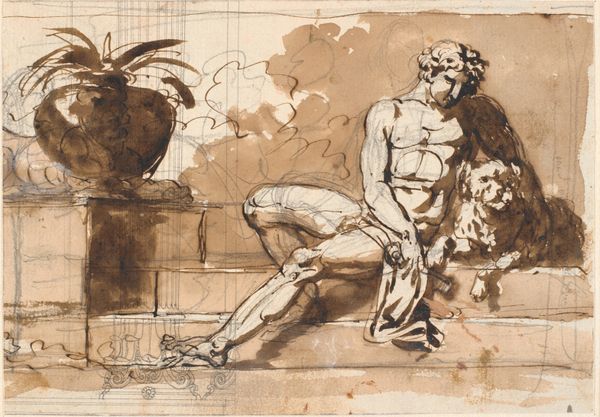 Nicolai Abildgaard rendered this ink drawing titled, Onsdag. Merkur sidder med stav og pengepose, which translates to Wednesday. Mercury sitting with staff and money bag. Abildgaard created this drawing during the late 18th century, a period marked by Neoclassical ideals and a growing interest in ancient mythology. As a professor at the Academy, he would have been versed in classical literature and imagery, and figures such as Mercury were often used to allegorize aspects of human nature. Mercury, the Roman god of commerce, communication, and boundaries, sits semi-nude, his body idealized in the style of classical sculpture. In terms of the historical and cultural context, it’s important to remember that Abildgaard created this during a time of significant social and political upheaval with the French Revolution, these classical symbols would have been loaded with contemporary meanings. Consider how Abildgaard uses the image of Mercury to explore themes of trade and wealth. The drawing speaks to the intersection of mythology, art, and the societal values of the time.