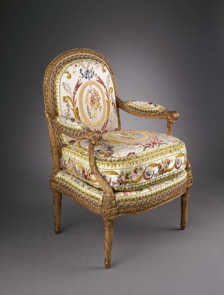 This Canapé, with its unknown maker, presents us with a fascinating tableau of symbols woven into domestic life. The cherubs and garlands adorning the fabric are more than mere decoration; they are carriers of classical memory. These motifs, deeply rooted in antiquity, resurface here, echoing the Renaissance's embrace of classical forms. We see cherubs, reminiscent of ancient depictions of Eros, gods of love, intertwined with garlands, symbols of celebration and the cyclical nature of life. Yet, in this domestic setting, their meaning shifts slightly. The cherubs, once powerful figures of desire, are domesticated. No longer harbingers of chaos, they become emblems of a refined sensibility. The garlands, though still celebrating life, are tamed into a pattern, controlled and orderly. This taming of powerful symbols reveals a deep human impulse to manage and make peace with the chaotic forces of life. A reminder of the past, reshaped and repurposed for the present.