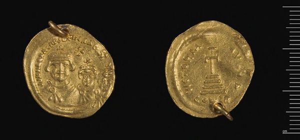 Editor: This is a gold coin of Justinian II, held at the Harvard Art Museums. It’s so small, yet it feels incredibly weighty, like it holds untold stories. What can you tell me about it? Curator: Well, the weight you feel comes from understanding this coin as more than currency. It's a potent symbol of imperial authority and divine right. Consider how Justinian II, a controversial ruler, used his image on coinage. What statement was he trying to make? Editor: It seems like he wanted to appear powerful and legitimate, despite the political turmoil? Curator: Precisely. And beyond personal ambition, it reflects the complex interplay between religious belief, political power, and artistic representation in Byzantine society. It prompts questions about identity, representation, and the narratives we construct through art. Editor: That's a lot to think about for one small coin! I see now that it's less about the gold and more about what it represents. Curator: Exactly.