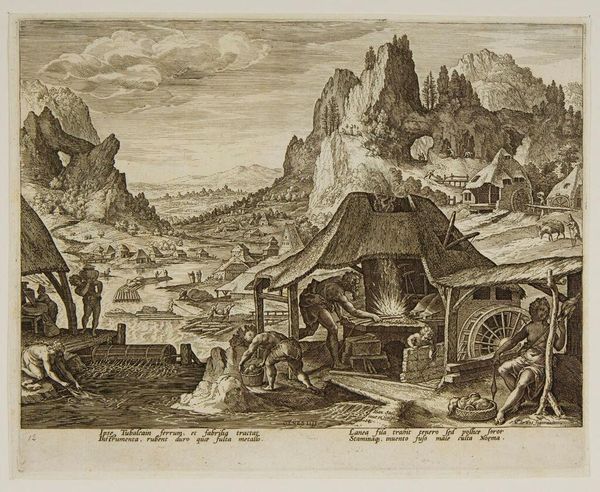 This engraving by Johann Sadeler I, made around 1600, depicts Tubal-Kain, the biblical ancestor of metalworkers, in his smithy. Dominating the scene, the blacksmith figure, hammering with fiery sparks, symbolizes human innovation and the mastery over nature. The image is reminiscent of Vulcan, the Roman god of fire and metalworking, who is often portrayed in his forge, surrounded by tools and assistants. This archetype extends back to the Greek god Hephaestus, who was similarly associated with craftsmanship and fire. The act of forging metal itself can be seen as a metaphor for transformation and creation, a powerful force that engages viewers on a deep, subconscious level. It mirrors the human psyche's ability to shape raw emotion into refined thought, and the continuous drive to innovate and create, a primal impulse that resurfaces throughout history, evolving with each new era.