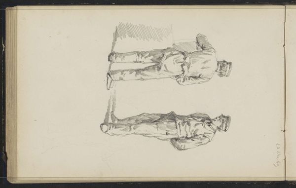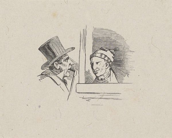 This pencil drawing, titled "Drie mannen aan een tafel" by Theo Hanrath, presents a fleeting glimpse into a social scene. The composition, dominated by a stark white background, draws our attention to the delicate network of graphite lines which define the three figures. The rapid strokes suggest movement and immediacy, capturing a sense of ephemeral interaction. The figures are arranged around a table, their forms articulated with varying degrees of detail. The two figures in the foreground are more defined, distinguished by their top hats, while the third figure in the background is merely hinted at. This contrast in detailing creates a visual hierarchy, inviting us to question what Hanrath aims to express. Is it a comment on social hierarchy, or is he simply capturing a fleeting moment? The sparseness of the strokes leaves room for interpretation, positioning the artwork as an invitation to ponder the silent narratives embedded within social gatherings.