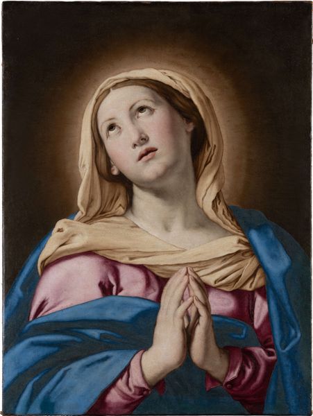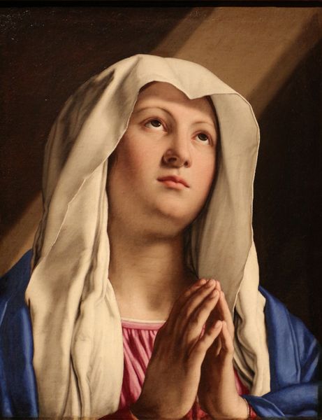 Quentin Matsys, around the cusp of the 16th century, captured this Virgin in Prayer on panel, a vision of subdued intensity. The composition directs our gaze, a tight focus on the Virgin Mary, framed against a dark backdrop which amplifies the delicate modeling of her face. A halo of radiant gold spears outwards, yet it's the internal geometry of her features that holds our attention. Matsys meticulously renders the textures: the sheer veil, the soft skin, the subtle gradations of light across her brow. Here, the formal elements convey the essence of the subject. The implied lines of her gaze and the clasped hands create a closed circuit of devotion, a visual metaphor for inward reflection. The artist uses line and form to create not just an image, but an embodiment of contemplative spirituality. It’s a piece that invites us to consider how material representation can evoke profound emotional and spiritual states. In this painting, the serene and structured composition offers a space for meditation on faith, and the enduring power of visual form.