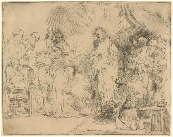 Gerbrand van den Eeckhout’s drawing, "Isaac's Reception of Rebecca" uses brown ink on paper to rapidly depict a scene from the Book of Genesis. Eeckhout’s choice of ink allows for both precision and fluidity, capturing the drama of the biblical moment with an immediacy reminiscent of a live sketch. Look at the economical strokes, the artist skillfully uses the ink’s viscosity to suggest depth and movement. The layered lines create a sense of bustling activity, while the varying pressure of the pen gives the figures weight and presence. The drawing's strength lies in its ability to convey so much with so little. Eeckhout’s sketch underscores the value of drawing as a fundamental practice. The work challenges the hierarchy of artistic mediums. It blurs the line between preparatory sketch and finished artwork, elevating the status of drawing to a form of art that is immediate, expressive, and complete in itself.