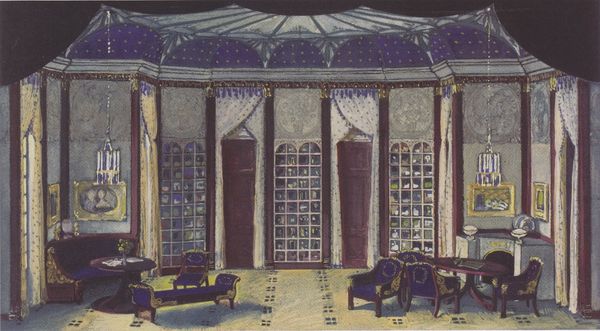 Konstantin Alexeevich Korovin created this watercolor painting titled "Refectory of the house of Ivan Khovansky," sometime in the late 19th or early 20th century. The artist uses flowing brushwork to convey the material qualities of wood and decorative elements, and in doing so provides insight into the social context of its making. Each stroke suggests the texture of the timber and the handwork involved in constructing such a space. The geometric patterns adorning the ceiling and windows speak to a tradition of craftsmanship, possibly referencing folk art or vernacular architecture. By choosing watercolor, Korovin captures the atmosphere of the refectory with a sense of immediacy and lightness. The transparency of the medium allows the underlying paper to contribute to the overall luminosity, evoking the natural light filtering through the windows, emphasizing the lived-in quality of the space. Ultimately, this work demonstrates the cultural significance of materials and the processes used, offering a glimpse into the values and aesthetics of the time, challenging notions of fine art.