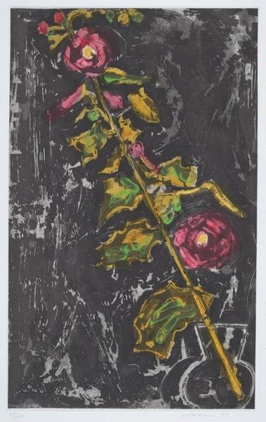 Editor: Here we have an untitled print by John Piper. The colors feel quite bold and the composition a little unsettling. How do you interpret this work? Curator: It feels to me like a clash between something solid and something fleeting – the dolmen itself is a stark reminder of permanence, yet the surrounding branches suggest the ever-changing dance of nature. It’s a dialogue, don't you think? Editor: Yes, it is, and the colors almost seem to fight each other! What do you make of that? Curator: Perhaps Piper is showing us that beauty can exist even in discord, a bit like life itself, chaotic, yet somehow harmonious. It speaks to me of resilience. Editor: That's given me a whole new perspective! Thanks!