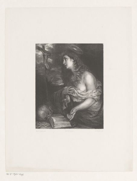 Emile Frédéric Salmon produced this etching of a woman with folded hands and windswept hair sometime in the late 19th century. The image encapsulates the Romantic movement’s preoccupation with extreme emotion. Consider the religious associations of the woman’s posture; clasped hands often indicate prayer, a plea to a higher power during times of distress. The woman’s apparent fright also speaks to the period’s interest in intense psychological states, explored in the literary works of Edgar Allan Poe and the dramatic paintings of Eugène Delacroix. Such cultural themes are indicative of the social uncertainty that followed the Industrial Revolution. Artists responded by turning inward, towards the individual’s emotional experience, in search of a sense of stability. Further exploration into Salmon’s life and the artistic institutions he was involved in would give us even more insight into the image’s significance. Art is always shaped by the context in which it is made.