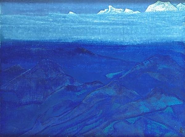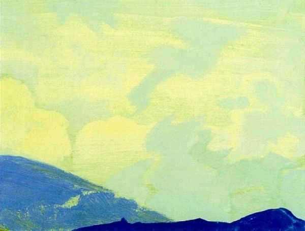 This “Mountain Abode” is by Nicholas Roerich, who painted prolifically across many different mediums. Roerich simplifies the landscape with long horizontal brushstrokes, in blocks of a limited colour palette that are mostly blues, greys and whites. The artist seems to be working reductively here, reducing the natural world down into its basic components. The brushstrokes feel brisk and intuitive. Take the clouds. They are built out of small strokes of white paint, set against a cerulean sky. You can almost feel the texture of the brush on the canvas. The colour palette gives the artwork a very pure quality, a little like looking at a fresco, or at a painting by Milton Avery. Both artists find their own ways to reduce forms to shapes and colours, and to present their vision of the world with its clarity and beauty.