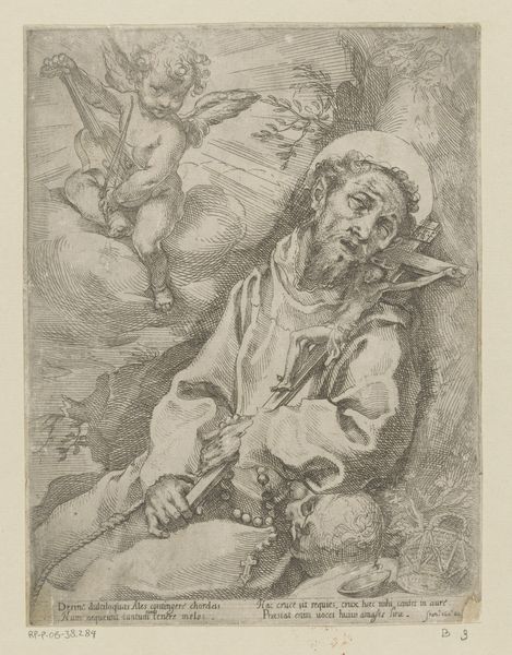 Curator: It looks… intensely uncomfortable. Editor: Indeed. Let’s consider Jan van der Bruggen’s "Keisnijder (het Gevoel)," dating roughly from 1659 to 1740. The medium here is an engraving, and what immediately grabs your attention is this powerful, unflinching depiction of what I'm presuming to be a street barber or quack “cutting for the stone.” Curator: The central image is arresting, there's no getting around it. But what cultural meanings might resonate? Beyond the obvious visual story? I imagine, for common folk, these practices held an almost mythical power. How does this image play into broader societal anxieties about charlatanism and medicine during the Baroque era? Editor: I think we cannot discard that fear and the anxieties over charlatanism that prevailed. Visually, the image screams of both trust and terror, the exaggerated expressions create a theater of human experience, evoking a visceral empathy. The symbols of headwear, perhaps implying social status in the play of dominance? I am fascinated with the fact the person at pain seems to hold onto the hat to ease the pain. Curator: The artist clearly revels in rendering emotion. These graphic depictions were not just observations; they actively participated in shaping public discourse around healthcare at that time, raising very palpable and raw questions about ethics and efficacy. Think of broadsides that disseminated news and satire, this image belongs right there with a role of social critique! Editor: Precisely, the scene is reminiscent of theater. We have, on one hand, someone in an extremely vulnerable state subjected to an uninvited intrusion in the body and an unsolicited manipulation that causes pure agony; on the other hand, the aggressor or “specialist,” a dominant role performed by a grotesque yet sure demeanor. But I agree with your point about these prints serving as accessible visual commentary for a wider audience on popular believes! Curator: Thinking of those anxieties and this widespread lack of medical expertise really gives context to art like this. And with a renewed interest in health today this piece creates such a link. Editor: Looking at the emotional symbolism and that immediate pain sensation gives me chills. Thank you.