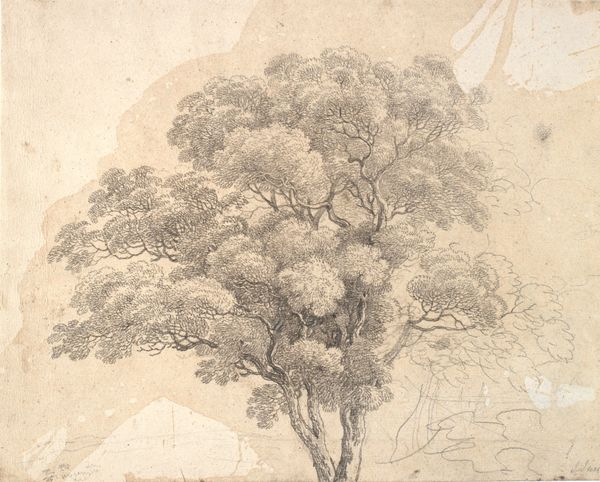 Editor: This is "Untitled (a tree without leaves)" by Ike no Taiga, it’s rendered in ink as a drawing, seemingly simple, yet that crown of tiny dots is so intriguing. What's your interpretation of this piece? Curator: Well, immediately I think about the Nanga school Taiga belonged to. It consciously rejected the rigid, politically-charged art establishment of the time in Japan, opting for a more personal, expressive style inspired by Chinese literati painting. Does seeing that context influence your appreciation? Editor: It does, actually! I didn’t know that. So, the seeming simplicity is perhaps a subtle rebellion? Curator: Precisely! Think of the power structures, the court-supported art, and then artists like Taiga choosing these more subjective, almost abstracted landscapes. Consider the visual vocabulary—line and ink, typical of calligraphy, but repurposed to depict nature in an introspective way. It's making a statement about authenticity. What emotions do you think that provokes in a viewer? Editor: A sense of quiet contemplation, maybe? And, knowing it was a rebellion against the norm makes it more powerful somehow. It is also in a sketchbook. Would the size have made it less impactful? Curator: Interesting question! Scale absolutely influences public perception and access to art, but the act of sketching, of personal reflection, further amplifies the statement of independence that the Nanga artists were trying to cultivate. Perhaps size is irrelevant in that sense! What’s most fascinating to you? Editor: The connection between artistic expression and social context, absolutely. The simple sketch carries so much weight now. Curator: And that, precisely, is why studying art history is so vital! There is power in images.