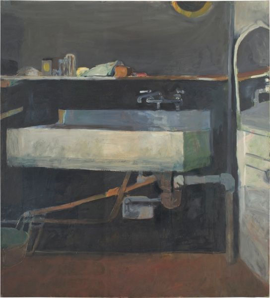 Curator: Welcome, everyone. We’re now in front of Edvard Munch’s “Man’s Body on an Autopsy Table,” created sometime between 1928 and 1932. Editor: It's unsettling. The stark blues and greens, combined with that earthy figure... there’s a visceral coldness to it. A palpable sense of death hangs in the air of this watercolor. Curator: Indeed. It’s fascinating to consider the context of its creation. During this period, Munch was deeply preoccupied with illness and mortality, fueled, in part, by his own declining health. It reflects the anxieties of modern medicine's detached view of the human body, where it is often treated as a spectacle rather than a vessel. Editor: You see that in the application, too. Look how thinly the watercolor washes are applied, almost skeletal in themselves. It speaks volumes about artistic choices reflecting a larger trend of deconstructing form and probing societal taboos of how labor shapes both life and death, physically imprinting itself. Curator: Absolutely. It challenges traditional academic approaches. Rather than glorifying the human form, Munch presents its vulnerability within the medical gaze. And we can’t ignore that it was painted during a rise of public institutions being established. How that may have impacted access to seeing medical procedures in an objective and observing manner, rather than fearful. Editor: And watercolor! Typically thought of as delicate, almost feminine. But here, it underscores a stark, masculine subject…challenging conventions and highlighting materiality that forces our view, questioning how certain mediums are associated with subjects based on their cultural use. Curator: A potent subversion. And note the composition, the subject beneath the window's cold light. There is also what looks to be structural gridlines that almost makes the painting look staged. Do you think this reinforces the voyeuristic quality you were initially talking about? Editor: Exactly! We witness the mechanics of viewing and deconstruction of self. In essence, a potent statement of society viewing us through glass and the consequences of how our laboring class is perceived under such bright spotlights. Curator: Food for thought, definitely, as we move on to our next piece... Editor: Indeed. It is always good to question our pre-conceived notions and material impacts within societies through art.