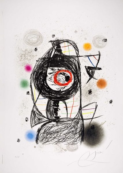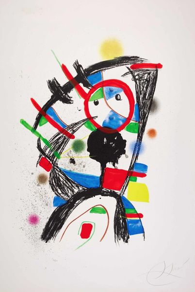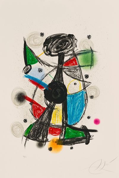 This is Joan Miró’s ‘Colombine au saut de lit,’ and you can almost feel the artist feeling his way through the image, line by line, color by color. It’s like he’s thinking out loud with the materials, making it up as he goes along! Look at the rough textures, the crayon-like strokes. You can almost see his hand moving, deciding, adjusting. The colors, though bold, feel a bit tentative, like a kid playing with new markers. Then there's that eye, that black, wonky eye! It’s so immediate, so present. It feels like Miró is winking at us, inviting us into his playful world. Miró was a master of this kind of spontaneous, process-driven art. It reminds me a bit of Paul Klee, who also had this childlike wonder in his work. Both artists embrace ambiguity, inviting us to find our own meanings in the marks.