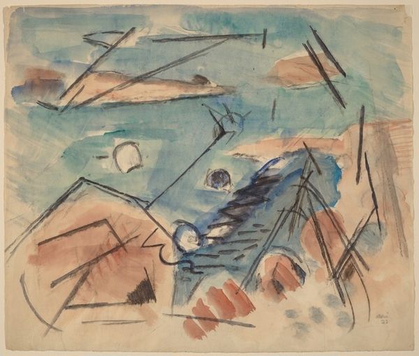 John Marin made "The Ramapo Mountains Country, N.Y." with watercolor and charcoal; it's dated '50, which I assume means 1950. The way Marin’s marks sort of hover on the paper, they make me think of a landscape remembered, not necessarily observed. The washes of color are delicate and yet, the composition is dynamic. Look at how he's used the blue. Patches of it pool at the bottom like water and then they reappear higher up, suggesting shadows or maybe even the sky reflected in the mountains. It's mostly transparent, allowing the charcoal lines to peek through, creating a sense of depth. There is a column on the right-hand side, its blue wash a little stronger than the rest, that almost divides the picture plane. Marin was one of the early American modernists, always pushing the boundaries of representation. It reminds me a bit of Arthur Dove, but with a more nervous energy. He seems to ask, how much can I take away and still have it be a mountain? Or maybe, how can I capture the feeling of being in the mountains, rather than just painting what they look like? There's no right answer.